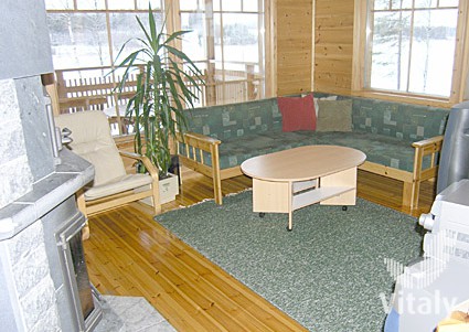 Это трехэтажный деревянный дом, он был построен в 2000 году. На верхнем этаже находится спальня с 2 кроватями, три комнаты с 1 кроватью в каждой и балкон. На первом этаже кухня, гостиная, спальня с 2 кроватями, отдельный туалет, веранда и балкон. Цокольный этаж: гостиная с открытым камином и одной дополнительной кроватью, раздевалка, ванная комната, сауна, отдельный туалет. Дом оборудован механической системой кондиционирования. Снаружи находится открытая веранда. К берегу ведет мягко скошенная тропа. В наличии есть собственная лодка.