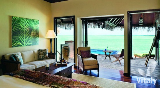 На белоснежном пляже живописного острова с пышной тропической растительностью и среди кристально чистых вод одной из самых больших лагун Мальдивского архипелага расположились роскошные виллы Taj Exotica Resort & Spa Maldives, выполненные в традиционном островном стиле.