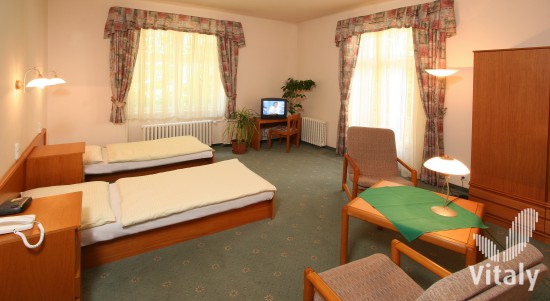 Для проживания мы предоставляем номера – люкс, оборудованные – телевидением, сателлитом, телефоном, холодильником, сейфом, интернет коммуникацией. В отельном комплексе есть собственная автостоянка. Прямо в здании размещен ресторан, который предлагает специальные диетные блюда, широкого диапазона диет /напр. разгрузочная диета, диета для диабетиков, вегетарианская диета, диета для понижения холестерина, диета без клейковины. Мы предлагаем нашим гостям индивидуальную диету после консультации с медсестрой по питанию. Зал с летней террасой – прекрасное место для отдыха.