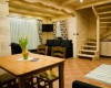 Первый этаж: салон с кухонным уголком, камин, в салоне стул, стулья, два раскладных дивана, выход на террасу, санузел – туалет, душ.