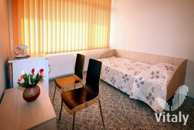 В отеле – одноместные номера, двухместные номера с раздельными или одной двуспальной кроватью, двухкомнатные семейные номера.